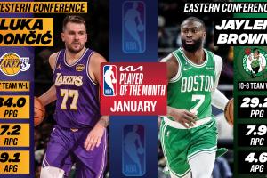 经典黄绿~月最佳球员:东契奇场均34+7+9 杰伦·布朗场均29+8+5体育资讯02月04日讯NBA官方宣布,凯尔特人的杰伦·布朗和湖人的东契奇分别当选1月东西部月最佳球员。在1月,东契奇场均34.0分7.2篮板9.1助攻,湖人取得了9胜7负的战绩;杰伦·布朗场均29.2分