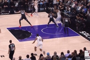 继续喂饼!哈登再送助攻 贾勒特·阿伦篮下勾手命中GIF-哈登再度助攻阿伦