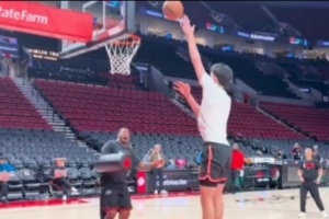 杨瀚森赛前练习对抗下的勾手 三分线外Cross Over单打助教体育资讯2月8日讯今日上午开拓者主场背靠背再战灰熊,赛前杨瀚森和助教练习了对抗下的勾手,此外小杨还在三分线外变向过人单打了助教一个,气氛比较轻松。