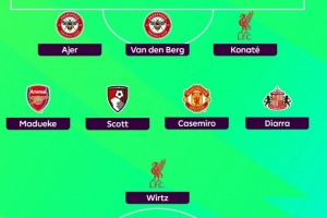 希勒评英超24轮最佳阵:埃基蒂克、卡塞米罗、维尔茨、科纳特入选体育资讯2月4日讯英超第24轮已经结束了全部的争夺,英格兰足坛传奇前锋希勒评选出了本轮英超最佳阵,埃基蒂克、马杜埃凯、卡塞米罗、科纳特、维尔茨入选。以下为具体阵容:门将:凯莱赫(布伦特福德)后卫:阿耶尔