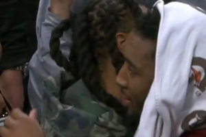 那就在这里告别吧!加兰赛后与骑士前队友依依惜别 还抹了抹眼泪GIF-加兰和前队友依依惜别