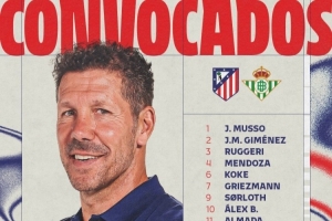 马竞对阵贝蒂斯大名单:卢克曼、阿尔瓦雷斯、瑟尔洛特在列体育资讯2月8日讯北京时间明天凌晨,马竞将在西甲第23轮比赛中主场对阵贝蒂斯,马竞公布了此役的球员名单。卡尔多索、巴里奥斯缺席,瑟尔洛特回归。马竞对阵贝蒂斯大名单门将:1-穆索、13-奥布拉克、31-埃