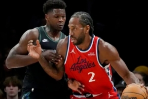 莱纳德vs爱德华兹:空间与得分快船打森林狼,莱纳德对华兹——一个得分西部第四,一个得分西部第三——也就次于卢卡和亚历山大了。结果莱纳德41分,华兹23分。按说不该是18分的差距。莱纳德开场第一球,找洛佩斯高位挡拆,不成,周而复始,