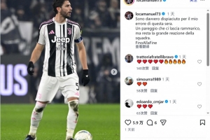 洛卡特利社媒:为我的失误感到非常抱歉,球队展现强大韧性体育资讯2月10日讯意甲第24轮比赛,尤文主场2-2战平拉齐奥。此役洛卡特利被断球,导致尤文丢掉第一球,赛后他在社交媒体上写道:“我为今晚我的失误感到非常抱歉。这场平局让我们感到遗憾,但球队展现的强大韧