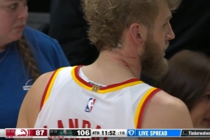 你们也太狠了吧!兰代尔劝架被误伤 脖子上三道血痕很鲜明!GIF-兰代尔脖子上三道血痕相关新闻:又打架啦!里德盖耶互相拉拽引发冲突!裁判回看后将2人都驱逐