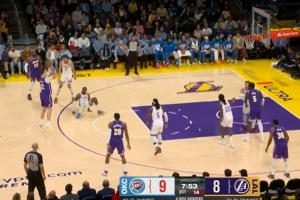 太有失水准了!拉拉维亚弧顶空位三分投出三不沾 直接出界了GIF-拉拉维亚弧顶大空位三分三不沾